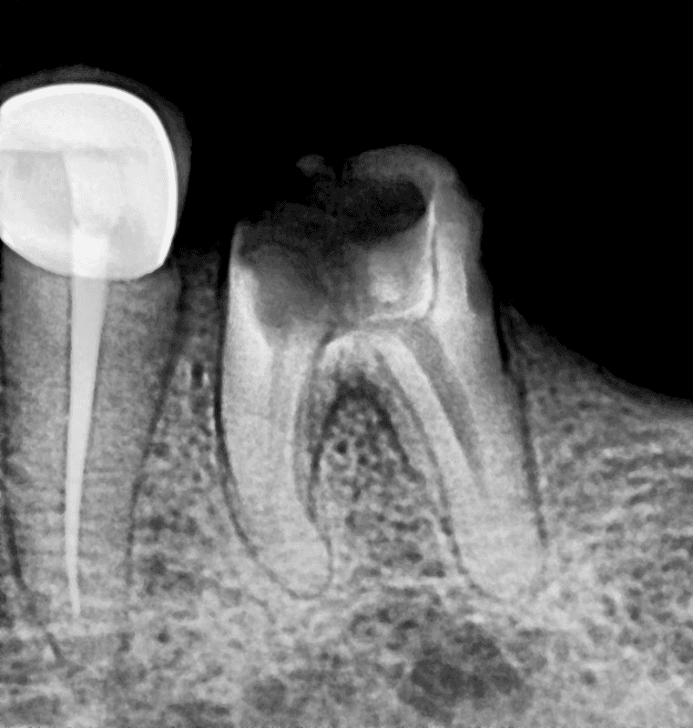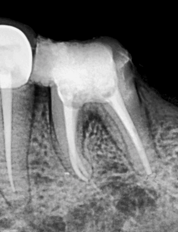 Deep infection had weakened the lower molar significantly. Precision root canal treatment helped avoid extraction.